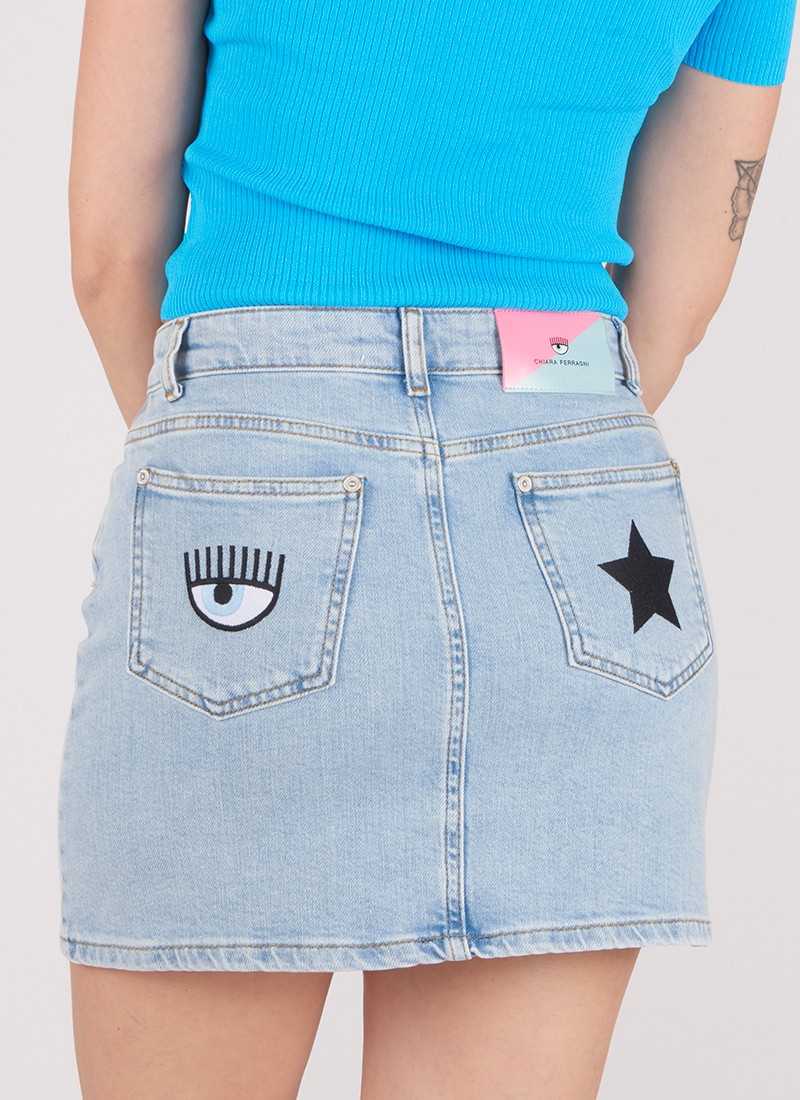- Minigonna di jeans con logo ricamato sul retro