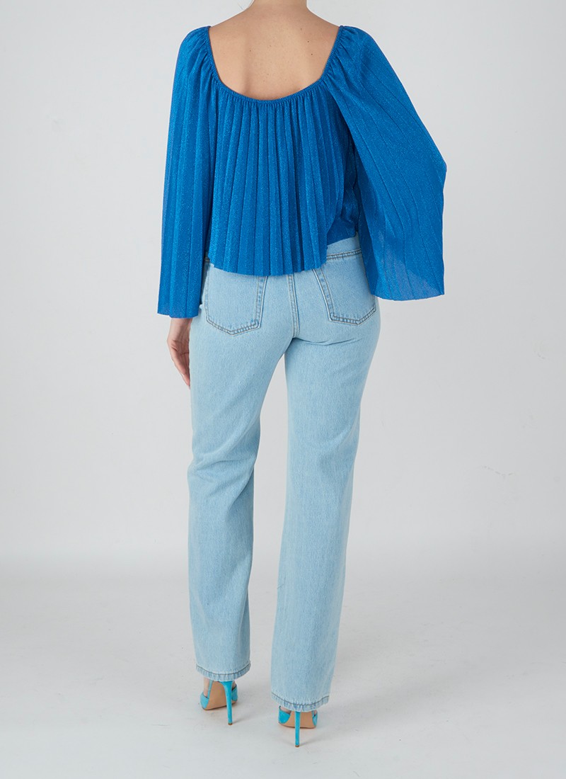 Jeans wide leg con strappi sulle ginocchia. Chiusura con zip e bottone.